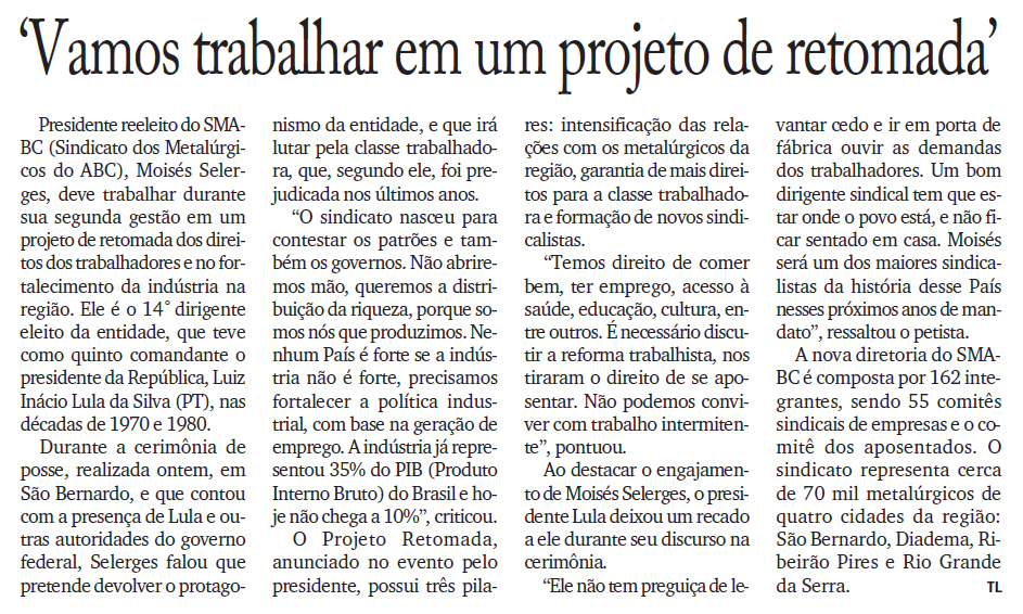 Presidente Lula participou da solenidade de posse de Moisés Selerges, reeleito para comandar o Sindicato dos Metalúrgicos do ABC até 2026 Postado por Giovani Costa em julho 24, 2023 Gerar link Facebook X Pinterest E-mail Outros aplicativos Fonte: Extraído de O DIÁRIO DO GRANDE ABC -SEGUNDA-FEIRA, 24 DE JULHO DE 2023 Comentários